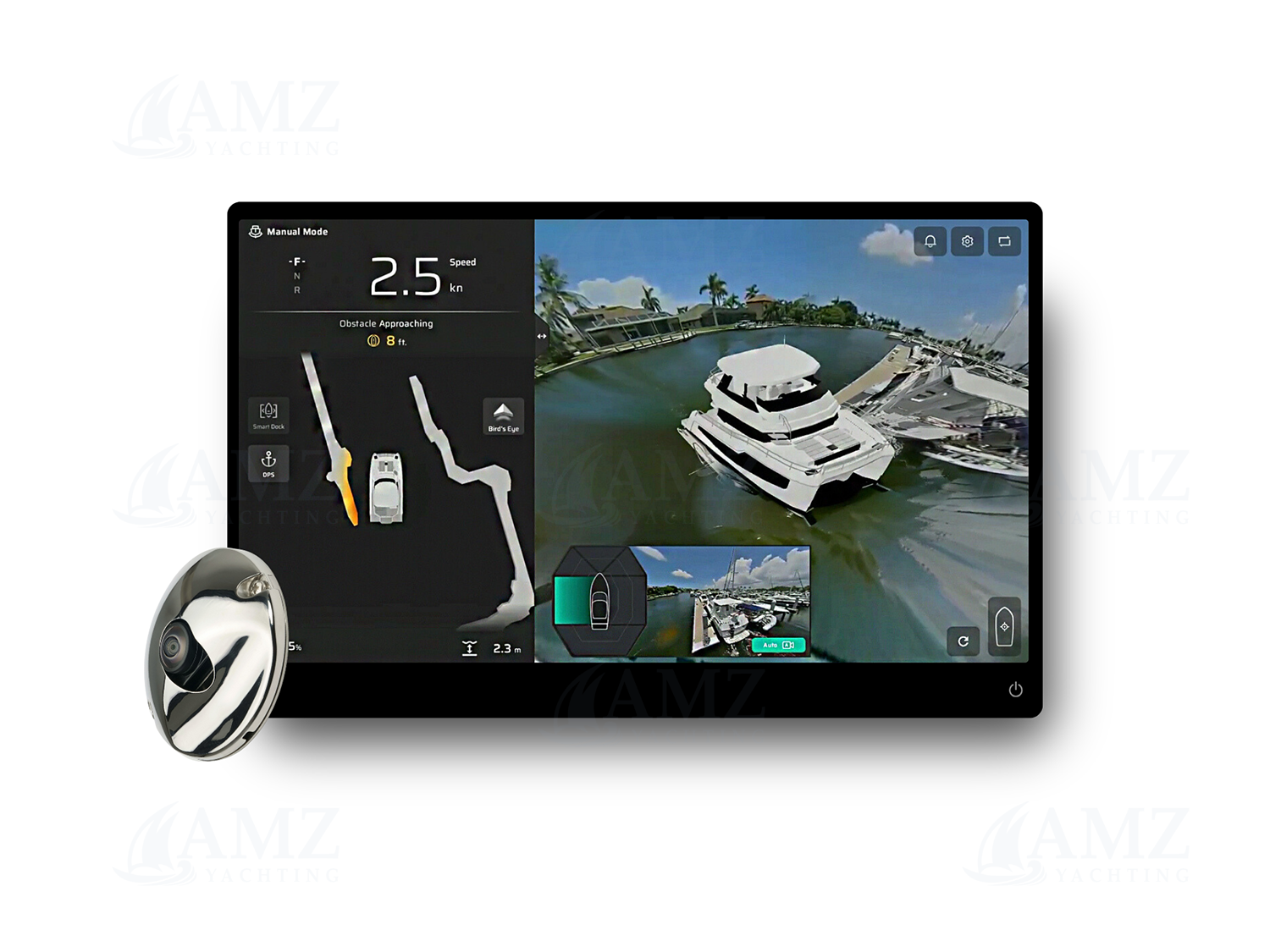- 3D Surround View and Multiple Views offers a comprehensive view of the area surrounding your vessel, along with individual camera perspectives, to assist with maneuvering during docking and navigation near potential hazards.